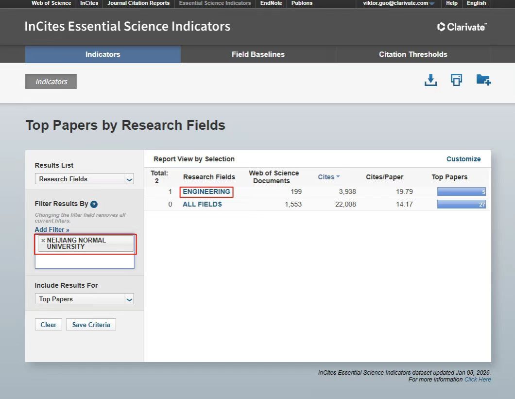 1月8日,科睿唯安(Clarivate Analytics)发布最新ESI(Essential Science Indicators,基本科学指标)统计数据,我校“工程学”(Engineering)学科首次进入ESI全球排名前1%,标志着我校在相关领域的研究已达到国际高水平,学科建设取得新突破,国际学术影响力持续增强。