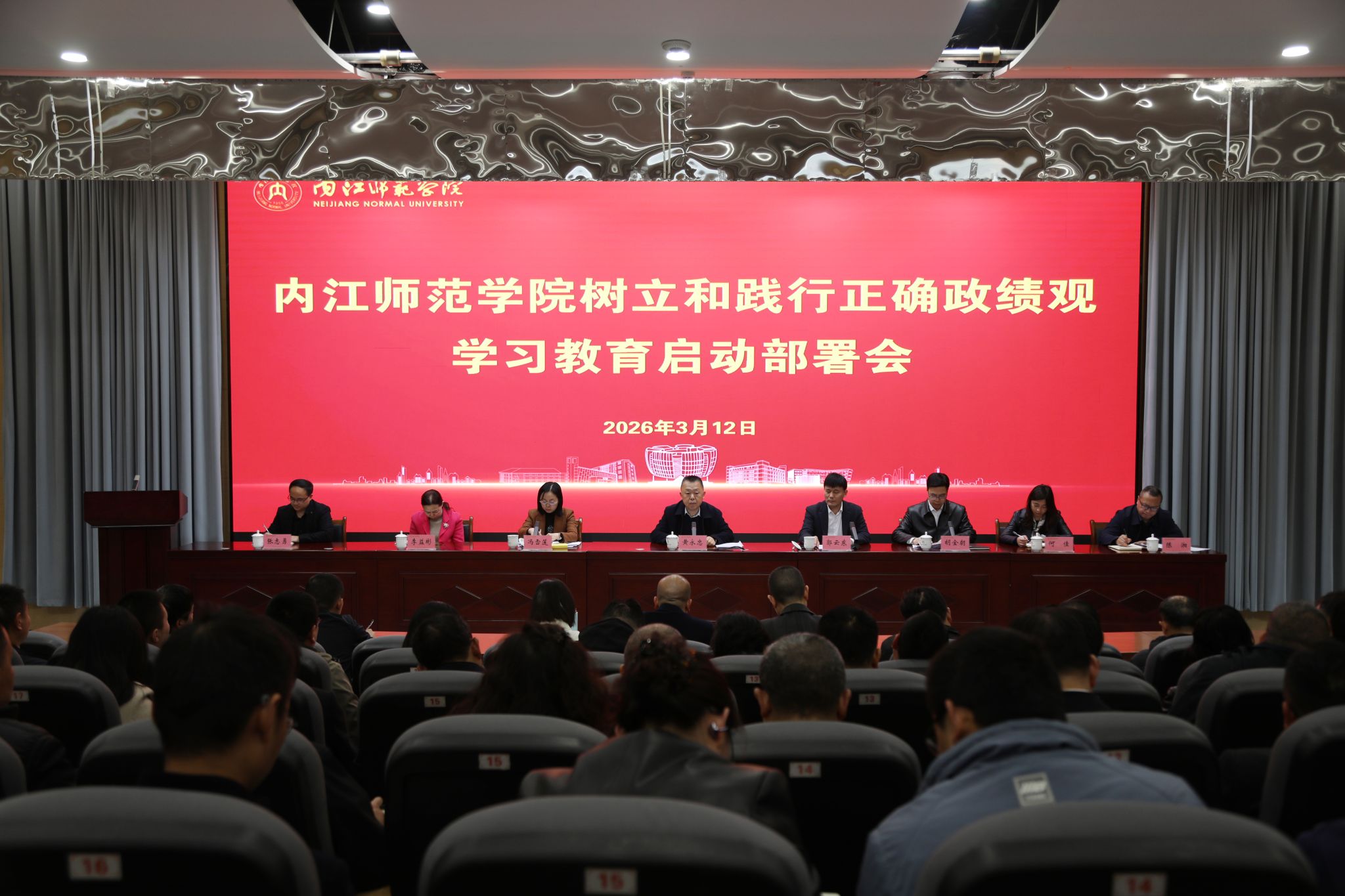3月12日,学校在会议中心大报告厅召开会议,部署启动树立和践行正确政绩观学习教育。校党委书记黄永忠作动员部署,校党委副书记、校长郭云东主持会议。全体校领导、学校党的建设和全面从严治党工作领导小组全体成员、全体中层干部参加会议。