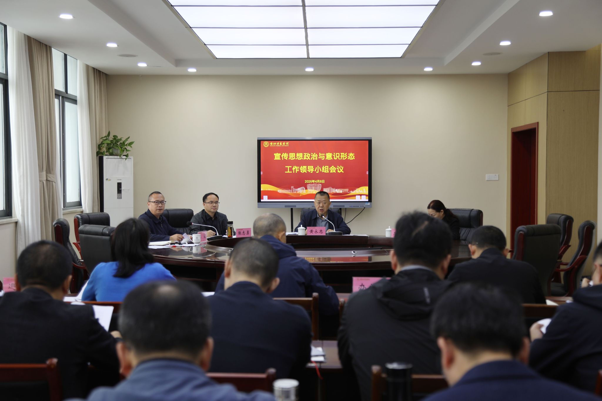 2026年4月8日上午,学校2026年度宣传思想政治与意识形态工作领导小组会议在行知楼B206会议室召开。校党委书记黄永忠出席会议并讲话。